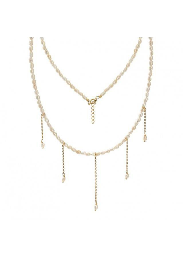 Naszyjnik wykonany ze srebra próby 925 , pozłacanego 24 karatowym, żółtym złotem Kamień: perła Rozmiar kamienia: 4 mm Długość :szyja: 38 cm + przedłużka do 42 cm