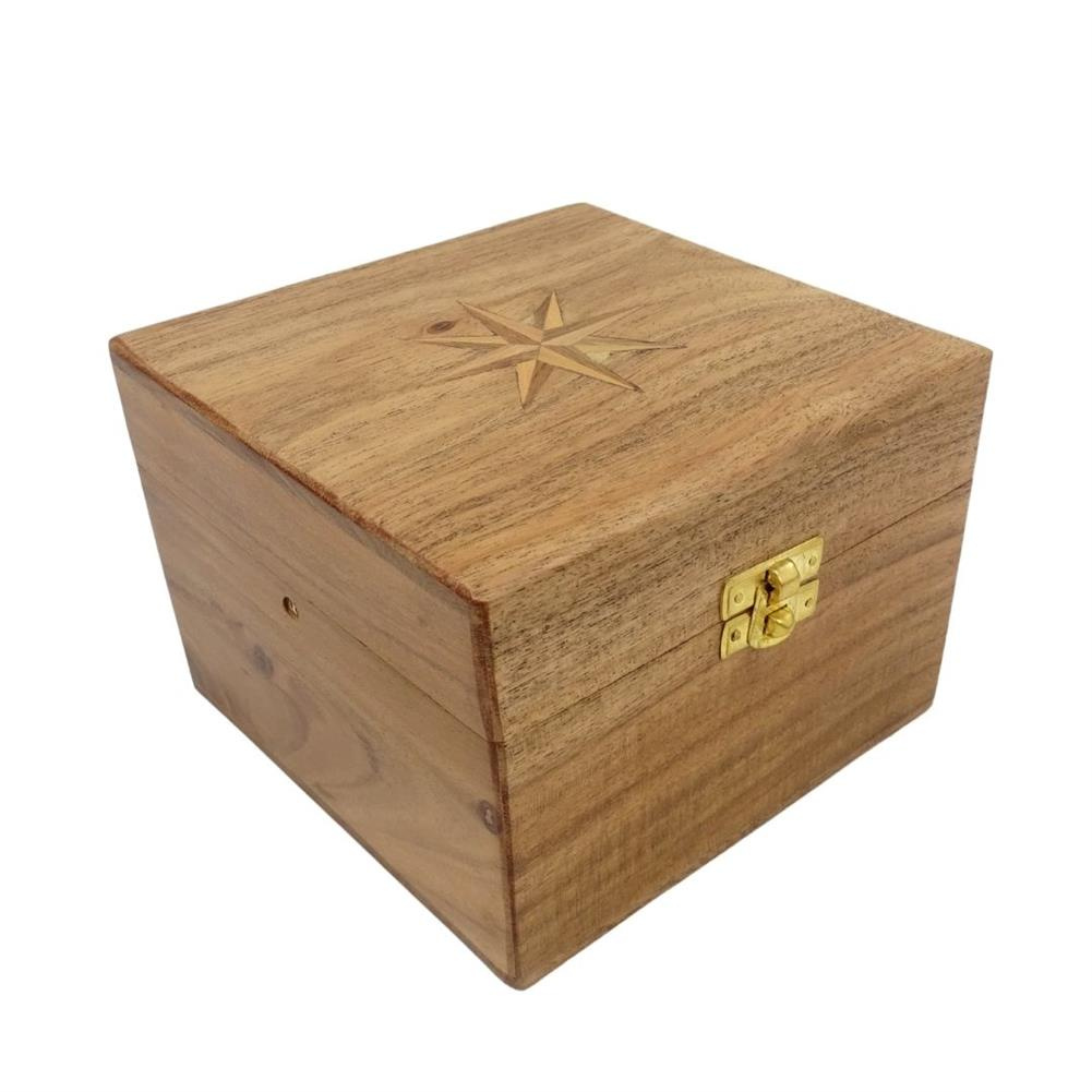 Kompas na jacht w stylu retro wykonany jest z mosiądzu i zawieszony w pudełku drewnianym. Funkcjonalna i elegancko wykonana busola będzie marynistyczną dekoracją pomieszczeń, kajut i mostków kapitańskich.