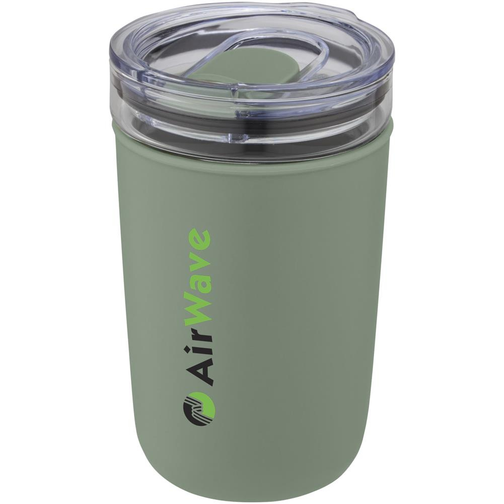 Szklany kubek Bello o pojemności 420 ml z zewnętrzną ścianką z plastiku z recyklingu