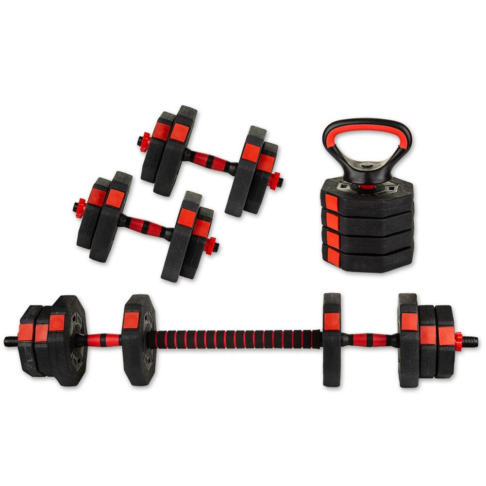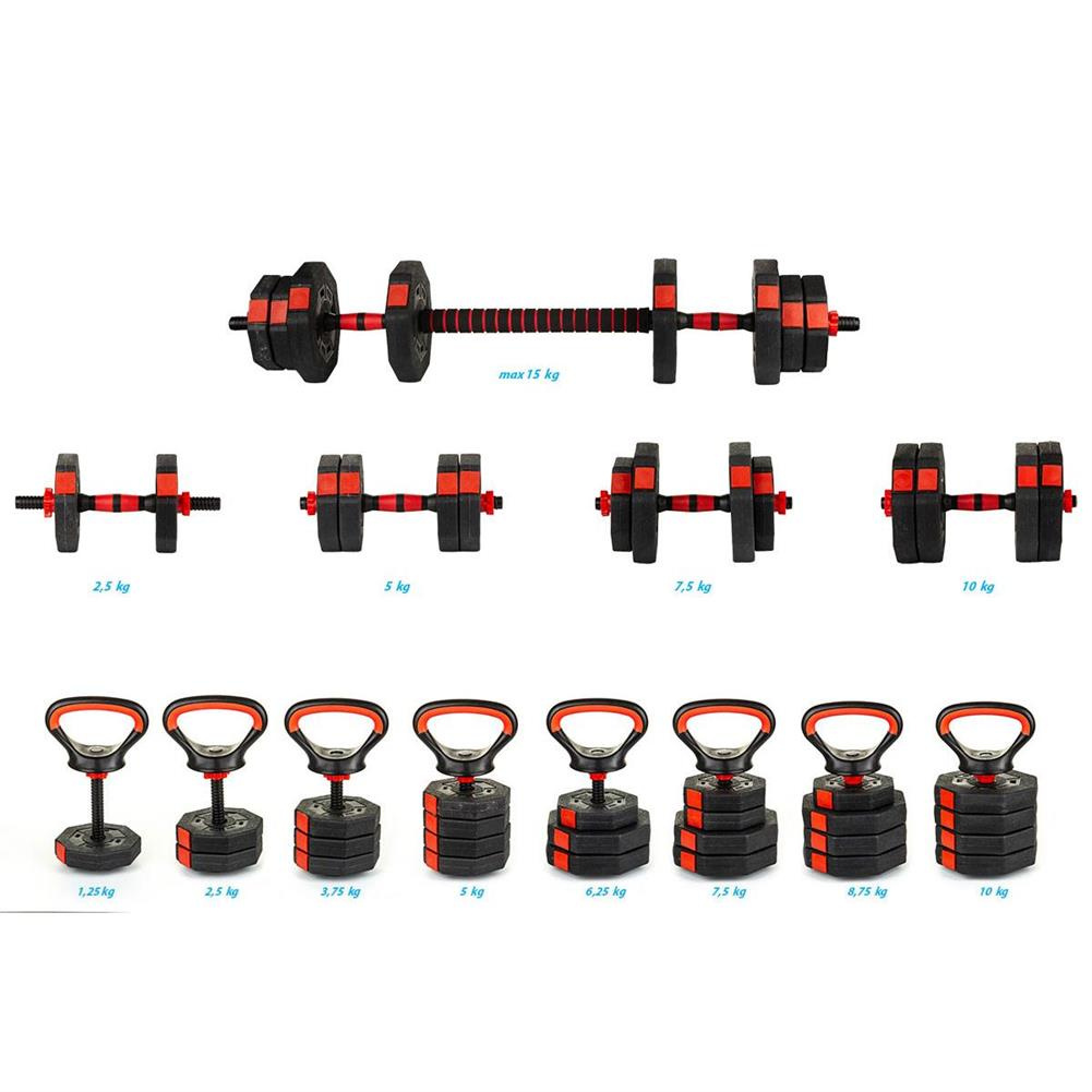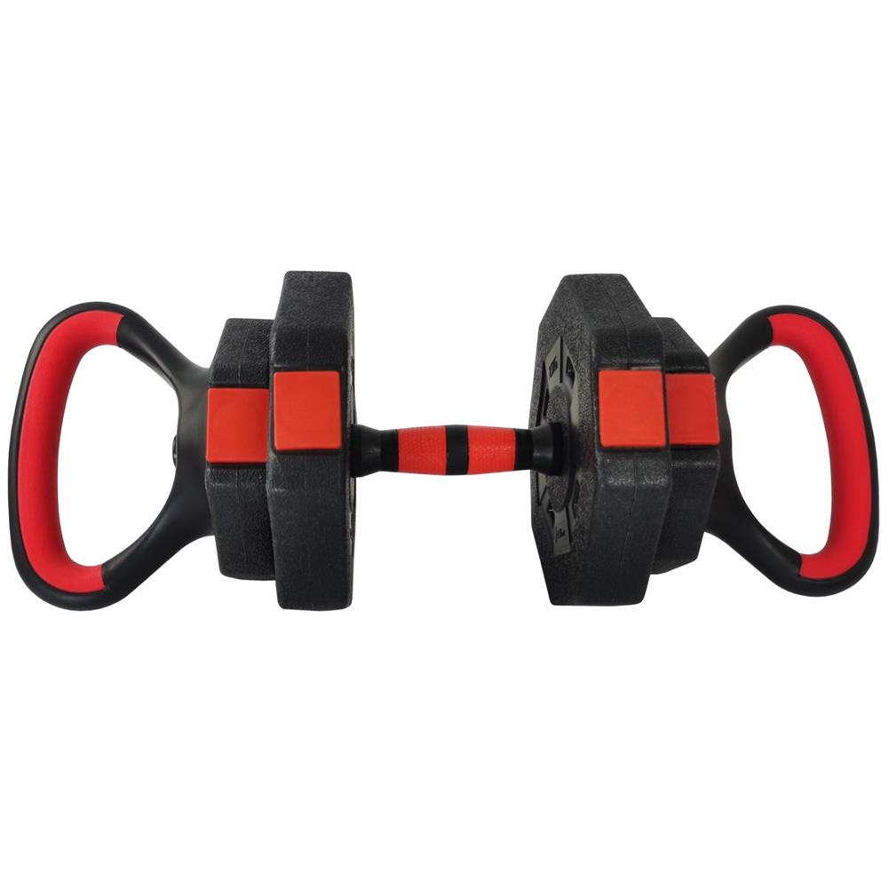 HANTLA KOMPOZYTOWA KETTLEBELL 4W1 15 KG ENERO FIT z funkcją sztangi, hantli, kettlebell, oraz urządzenia do pompek, to idealny zestaw do domowej siłowni.