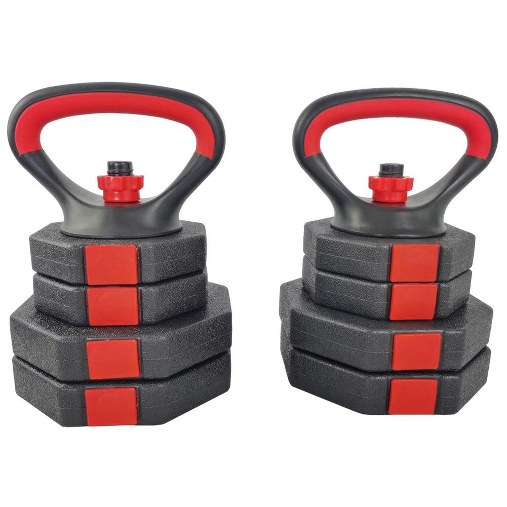 Dzięki połączeniu talerzy na specjalnym stojaku otrzymujesz kettlebell, który zapewni Ci inny wysiłek, niż w przypadku tradycyjnego treningu siłowego. Po ćwiczeniach z hantlami lub sztangą warto dodać elementy wydolnościowe i cardio, które wpływają na układ krwionośny. Podczas aktywności z kettlebell możesz osiągnąć ponad 60% maksymalnego tętna, dzięki czemu staje się on ważną formą treningu sercowo-naczyniowego. Po rozłożeniu kettlebell, uchwyty posłużą Ci do robienia pompek, by dodatkowo wzmocnić mięśnie brzucha, nóg i pleców