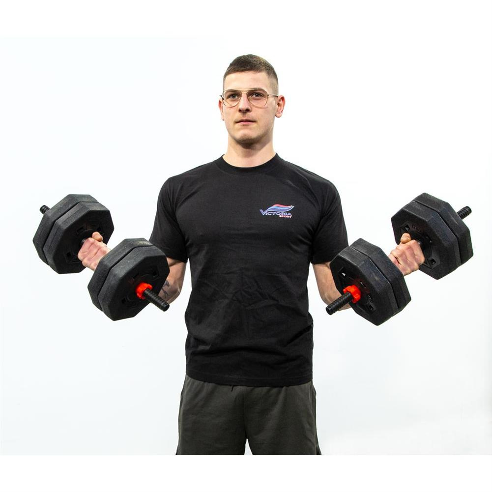 Dzięki uniwersalnemu zastosowaniu i funkcji 4w1, po treningu hantelkami szybko złączysz całość w sztangę. Z tym innowacyjnym zestawem, wykonasz trening na całe ciało. Ćwiczenia z hantlami i sztangą to jedne z najbardziej uniwersalnych form aktywności fizycznej. Poszerzasz wachlarz treningowy, wykonując ćwiczenia niemożliwe lub niewygodne samymi hantlami. W dowolnym momencie możesz dokładać/odejmować obciążenia do gryfów. Regulujesz obciążenie na treningu, dopasowując jego wagę do swoich potrzeb.