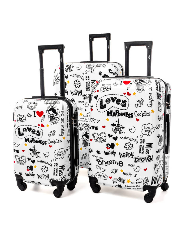 Zestaw 3 walizek KEMER RGL PRINT LOVES Biały