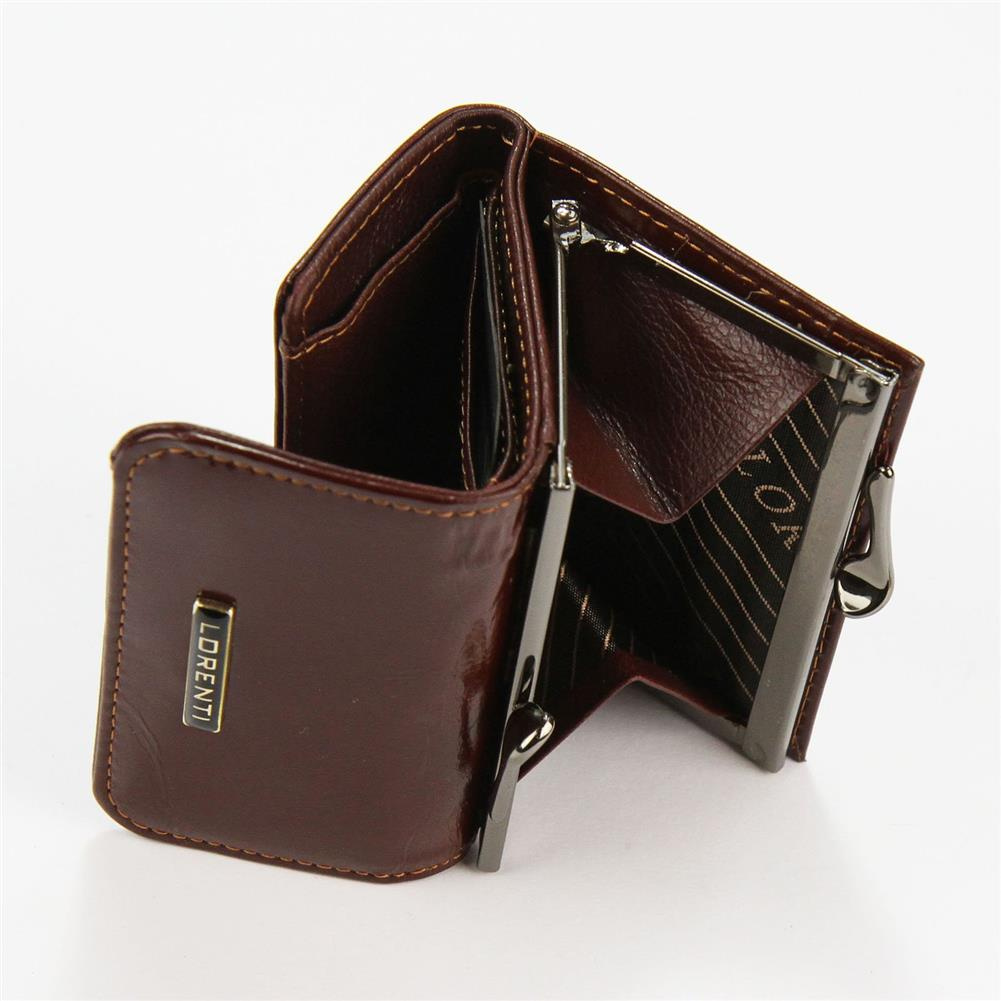 Niewielki portfel damski uszyty ze skóry naturalnej z kieszonką na bilon zamykaną na bigiel.