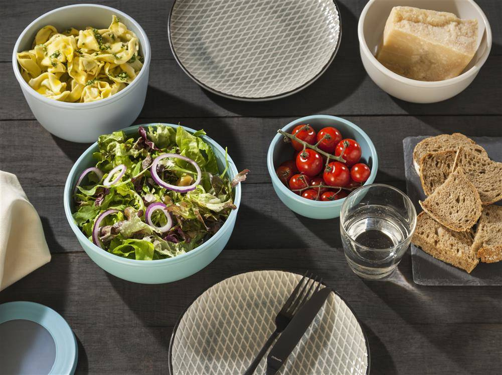 Zestaw 3 misek z serii Cirqula marki Mepal. Te multizadaniowe miski świetnie sprawdzą się podczas przyrządzania różnorakich dań (np sałatek, przekąsek, większe - do miksowania cista) jak również do ich serwowania. Każda z misek może również pełnić funkcję szczelnego pojemnika na lunch, zupy, kremy czy sosy. Możliwość piętrowego ułożenia pomoże zaoszczędzić i zagospodarować miejsce w szafce bądź lodówce, a przezroczysta pokrywa ułatwi sprwdzenie zawartości. Cirqule możemy zamrażać, myć w zmywarce, a po zdjęciu wieczka używać w mikrofali. Produkt wolny od szkodliwych dla zdrowia substancji (BPA free) Wymiary; 350ml (13,5 x 12,5 x 5,8 cm) 750ml (16,9 x 15,9 x 6,8 cm) 1250ml (20,2 x 19,2 x 7,8 cm) Ten wysokiej jakości produkt łączy funkcje praktyczne w estetycznymi, zapakowany w eleganckie pudełko znakomicie sprawdzi się również jako prezent.