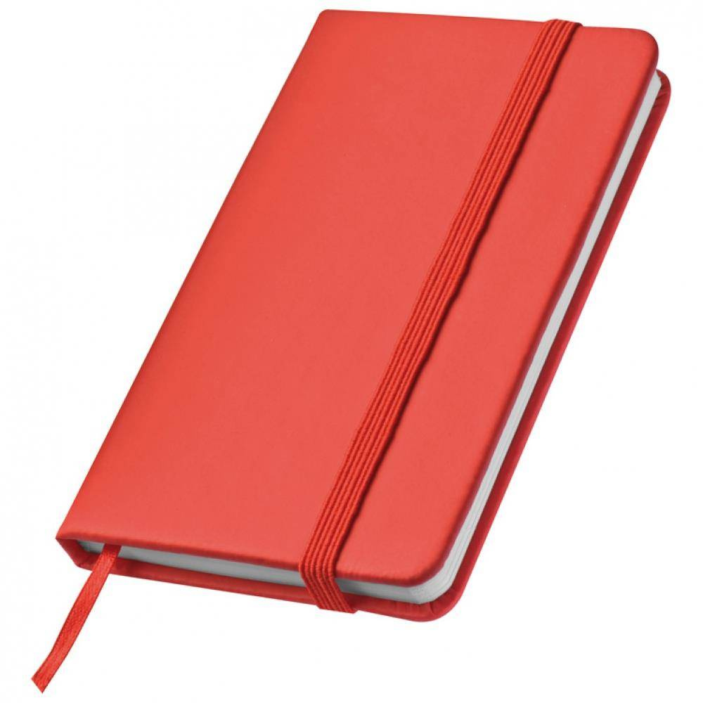 Posiada tasiemkową zakładkę oraz gumkę umożliwiającą zamknięcie.