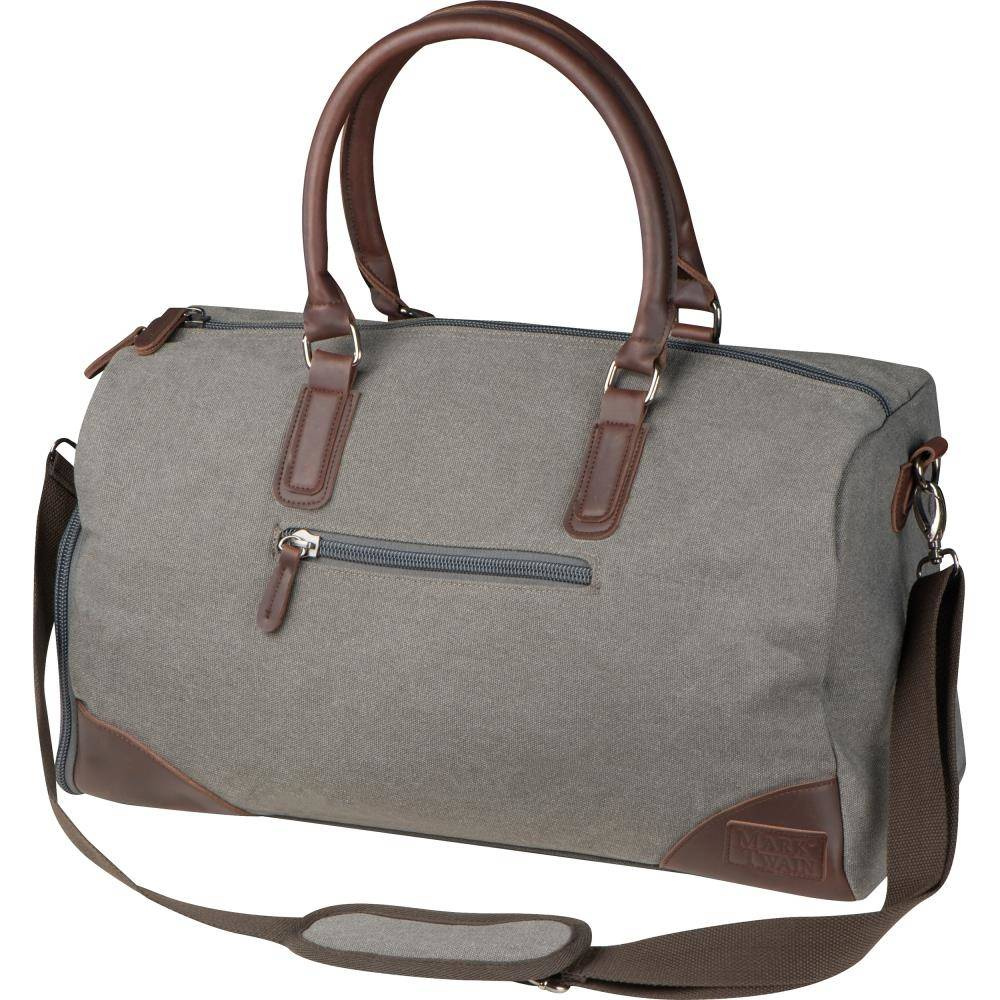 Stylowa i użyteczna torba podróżna marki Mark Twain, wykonana wytrzymałego płóciennego materiału z kontrastującymi wstawkami z ekoskóry.