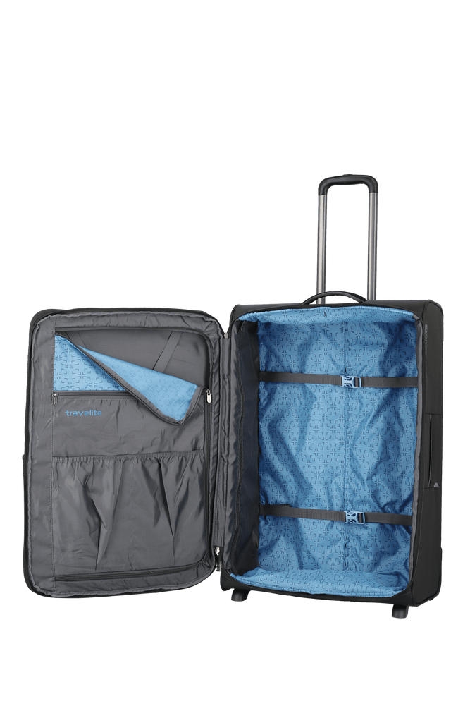 - rozbudowane wnętrze walizki, kontrastowy materiał wewnątrz