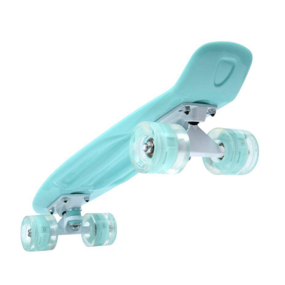 Deskorolka jest stworzona do jazdy po miejskich ścieżkach. Deck wykonany z tworzywa sztucznego. Antypoślizgowa powierzchnia. Poliuretanowe kółka charakteryzują się zwiększoną odpornością na uszkodzenia i ścieranie. Niewielka waga i rozmiary. Kółka z diodami led świeca podczas jazdy.