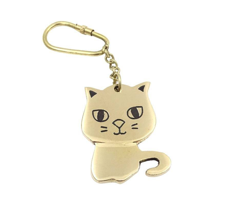 Brelok do kluczy Kotek KRT4 Mosiężny brelok z karabinczykiem w kształcie kotka. Świetny upominek dla miłosnika kotów. Wymiary: Długość breloka 5 cm Szerokość breloka 4 cm Długość całkowita 11,5 cm