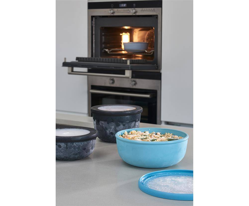 Miski z serii Cirqula to topowy produkt marki Mepal. Występuje w wielu pojemnościach i kolorach, można więc skomponować dolowny zestaw wedle własnych upodobań i potrzeb. Ta multizadaniowa miska świetnie sprawdzi się podczas przyrządzania różnorakich dań (np sałatek, przekąsek, większe - do miksowania cista) jak również do ich serwowania. Każda z misek może również pełnić funkcję szczelnego pojemnika na lunch, zupy, kremy czy sosy. Możliwość piętrowego ułożenia pomoże zaoszczędzić i zagospodarować miejsce w szafce bądź lodówce, a przezroczysta pokrywa ułatwi sprawdzenie zawartości. Cirqulę możemy zamrażać, myć w zmywarce, a po zdjęciu wieczka używać w mikrofali. Produkt wolny od szkodliwych dla zdrowia substancji (BPA free). Cirqula łączy funkcje praktyczne w estetycznymi, znakomicie sprawdzi się również jako prezent.