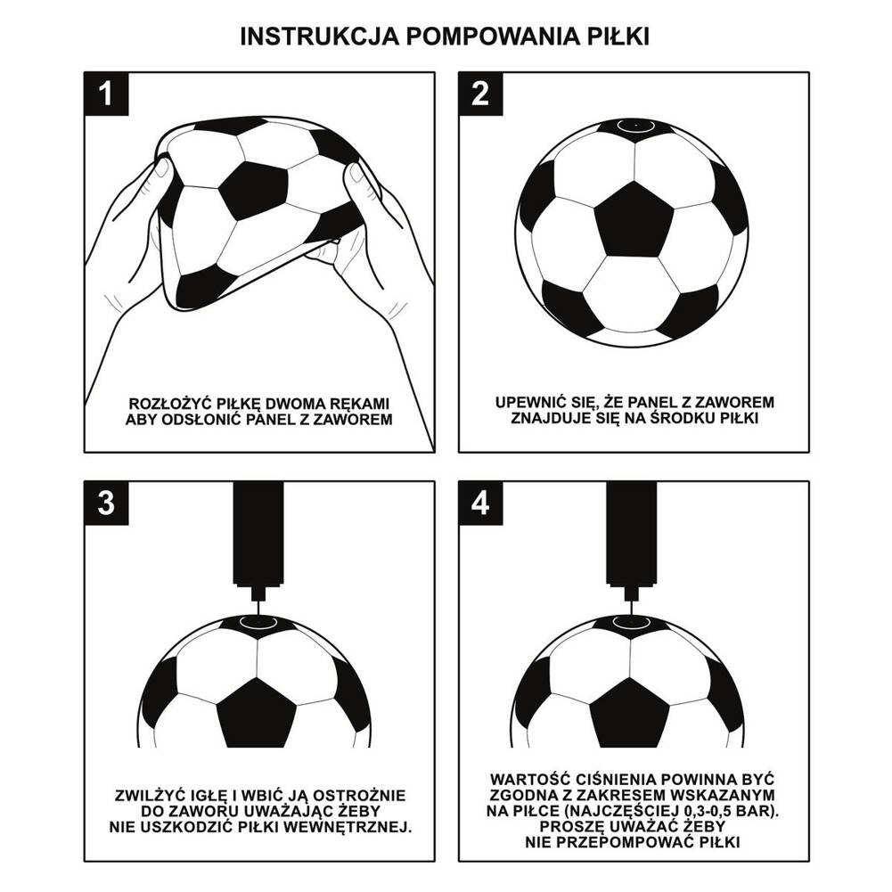 - Piłkę należy pompować zgodnie z zalecanym dla niej ciśnieniem - informacja o właściwym zakresie ciśnienia zawsze znajduje się przy wentylu.