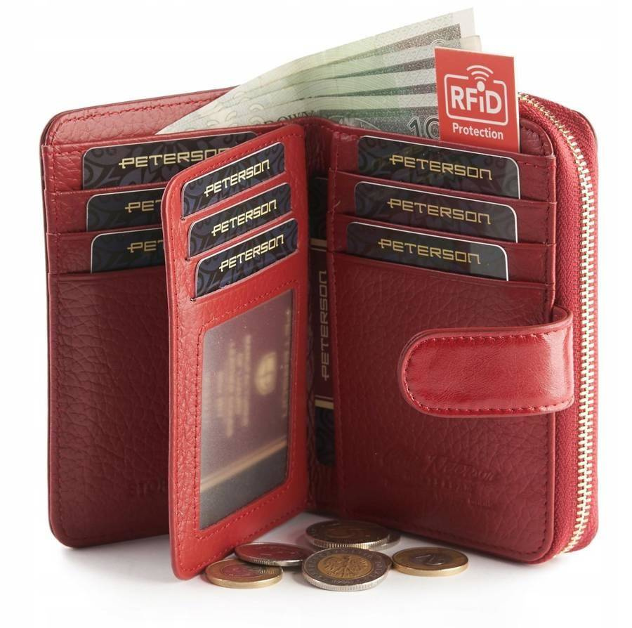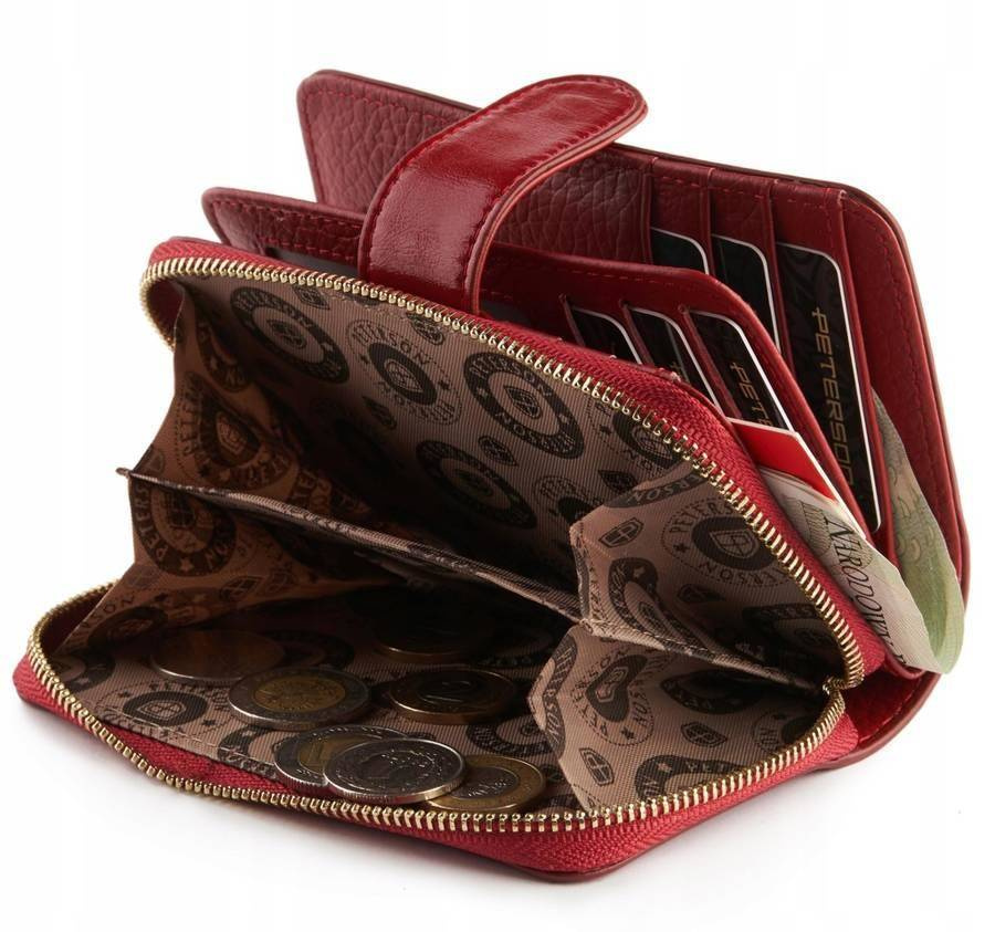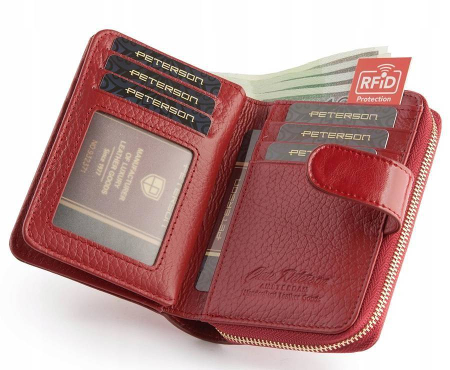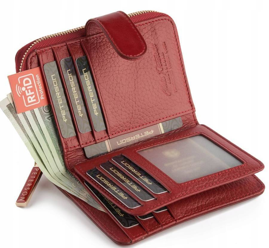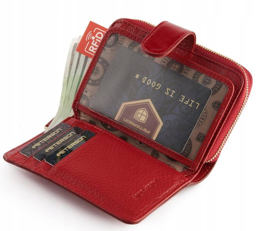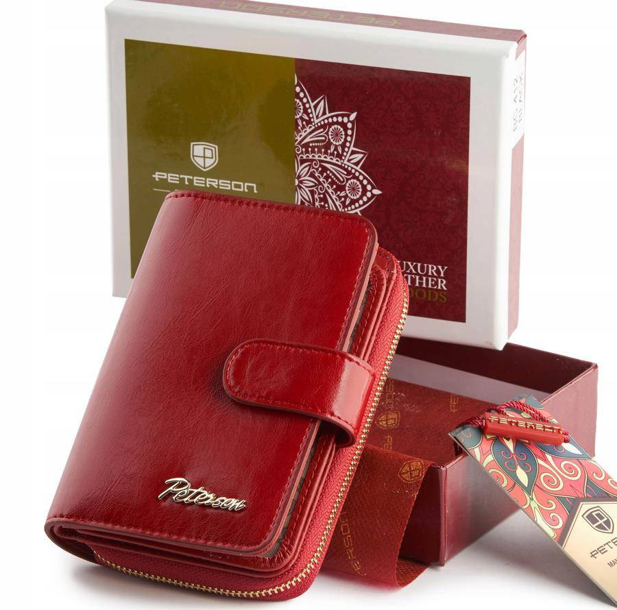 Skórzany portfel damski na zatrzask Peterson Czerwony