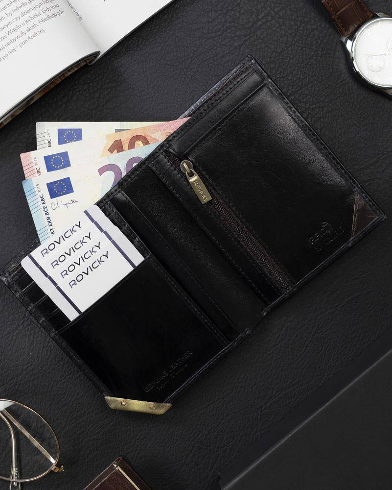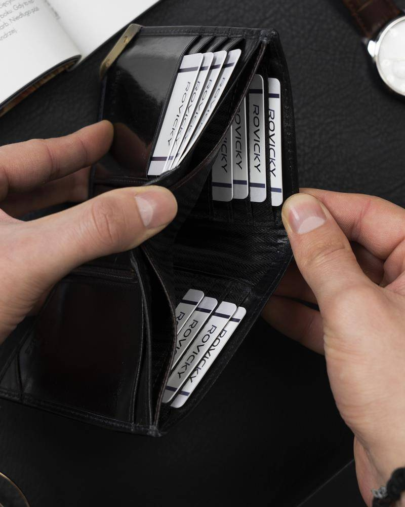 Uczciwie trzeba przyznać, że ten portfel Rovicky® prezentuje się naprawdę dobrze. Jest duży i pojemny. Któż z nas w tych czasach nie korzysta z dużej ilości kart czy dokumentów? Organizacja wnętrza umożliwia przechowanie ich w portfelu bardzo dużo.