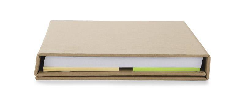 Modny, ekologiczny notes, który chowa w swoim wnętrzu linijkę, karteczki samoprzylepne, miejsce na wizytówki oraz długopis. Logo nadrukujemy na notesie.