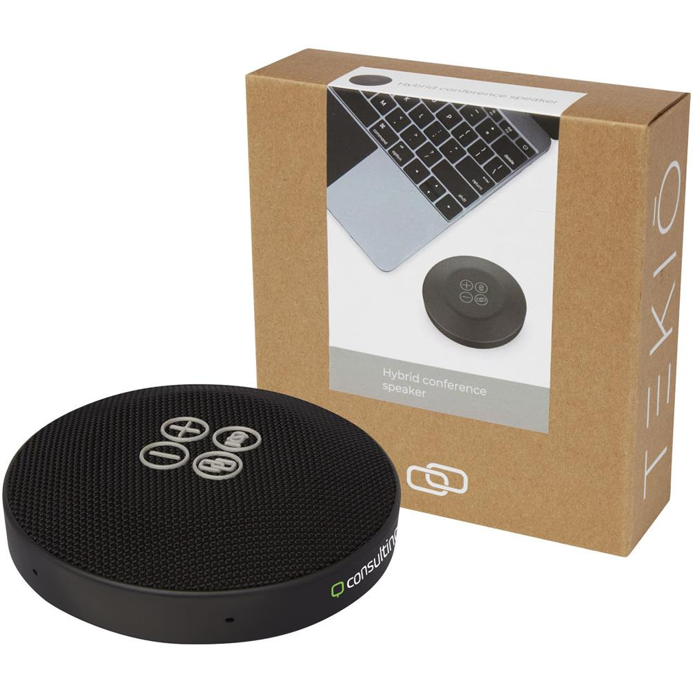 Ten kompaktowy i lekki głośnik konferencyjny jest idealny zarówno do użytku domowego, jak i biurowego. Połączenie Bluetooth® 5.0 o niskim poborze mocy o zasięgu do 10 metrów. Głośnik jest wyposażony w akumulator o pojemności 2500 mAh, który zapewnia do 4 godzin odtwarzania przy maksymalnej głośności na jednym ładowaniu. Ma 2 wbudowane mikrofony w technologii MEMS, które mogą wyraźnie uchwycić Twój głos, nawet gdy jesteś otoczony hałasem w tle. Dodatkowo, dzięki potężnemu wyjściu głośnika 2 x 3 W, może być on używany jako zwykły głośnik Bluetooth® dla wysokiej jakości muzyki. Dostarczana w wysokiej jakości pudełku z papieru Kraft z kolorową naklejką.