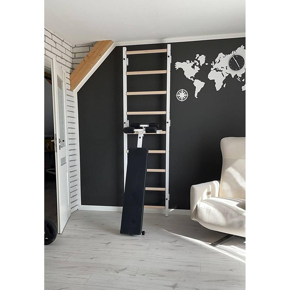• zestaw do montażu (oprócz kołków i wkrętów do ściany, które należy dobrać w zależności od rodzaju ściany do której drabinka gimnastyczna będzie mocowana)