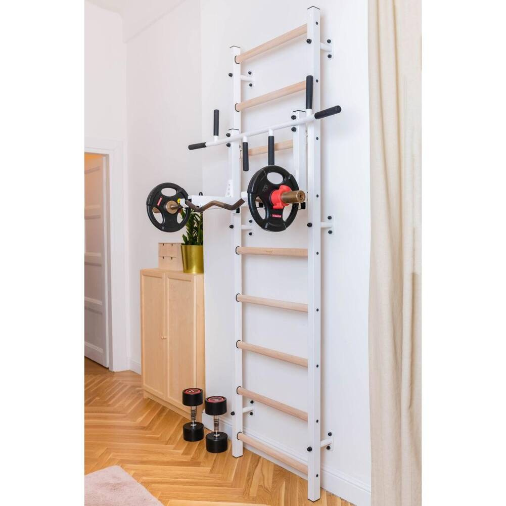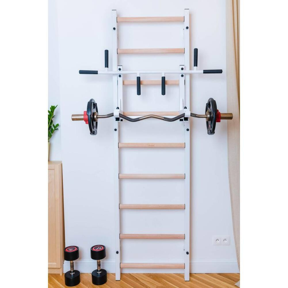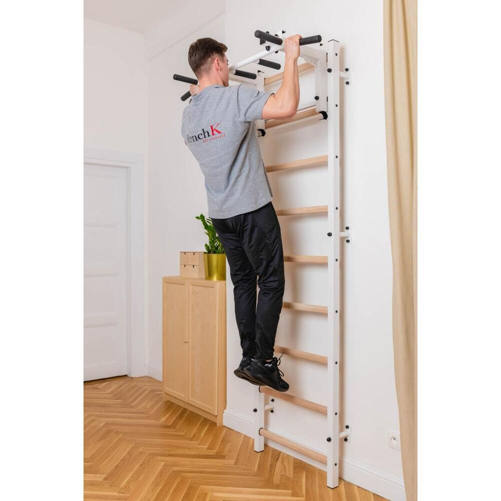 • zestaw do montażu (oprócz kołków i wkrętów do ściany, które należy dobrać w zależności od rodzaju ściany do której drabinka gimnastyczna będzie mocowana)