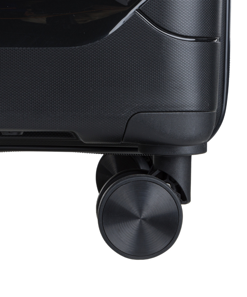 • walizka twarda wykonana z polipropylenu, materiału charakteryzującego się super lekką wagą i niezwykłą wytrzymałością