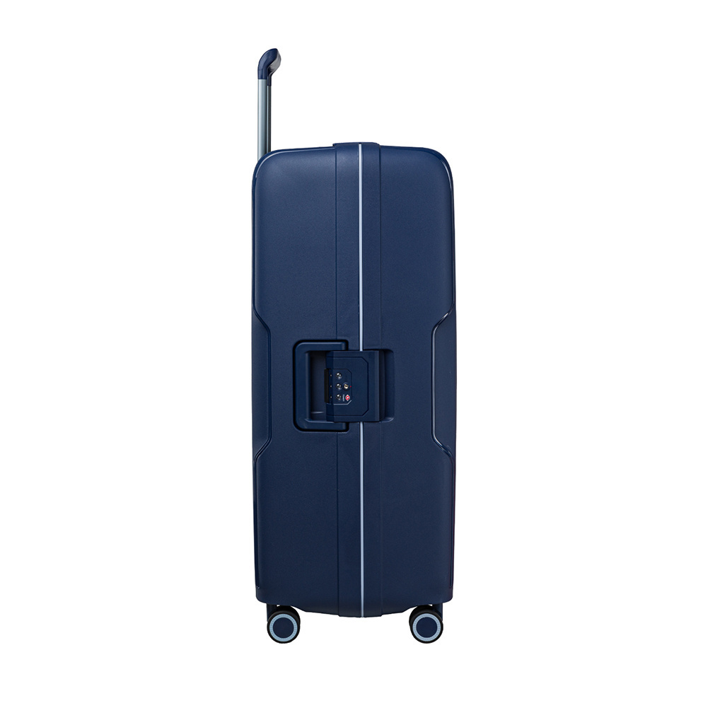 - walizka twarda wykonana z polipropylenu, materiału charakteryzującego się super lekką wagą i niezwykłą wytrzymałością