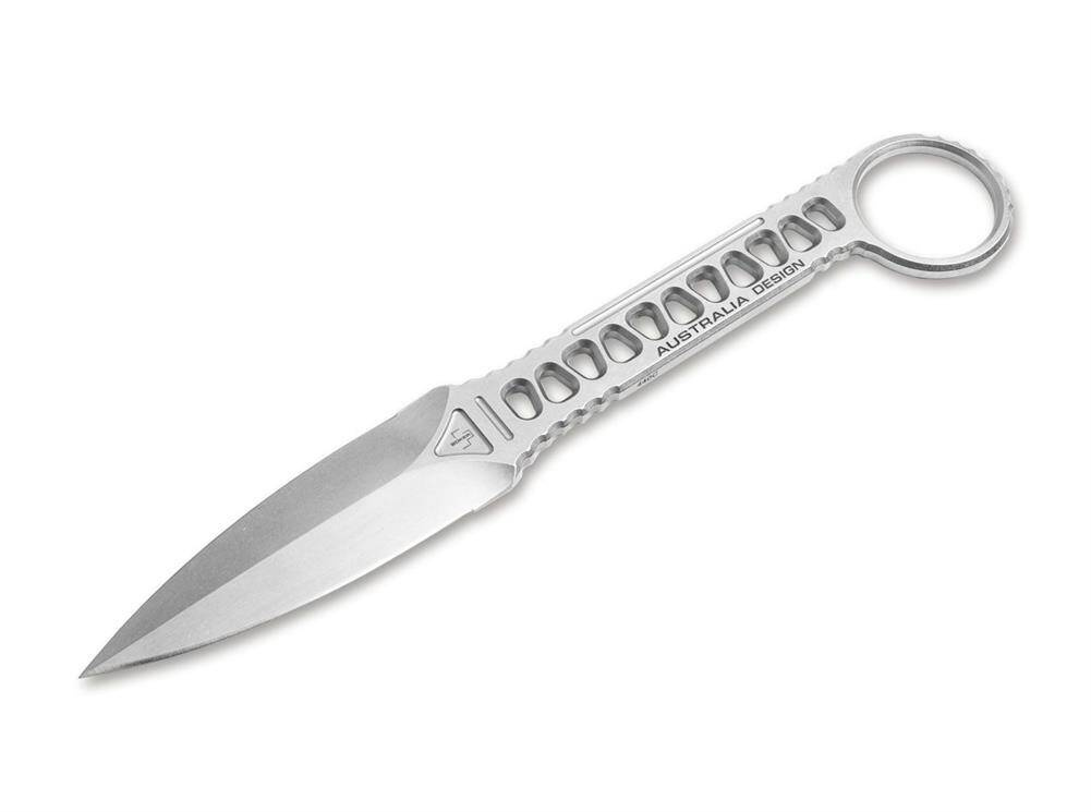 Sztylet jest noszony w kydexowej pochwie i adapterze do paska, który wchodzi w zakres dostawy, dzięki czemu smukły kształt i niewielka waga sprawiają, że można go również używać jako dużego