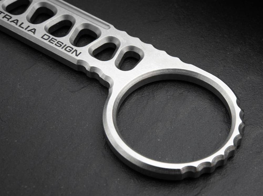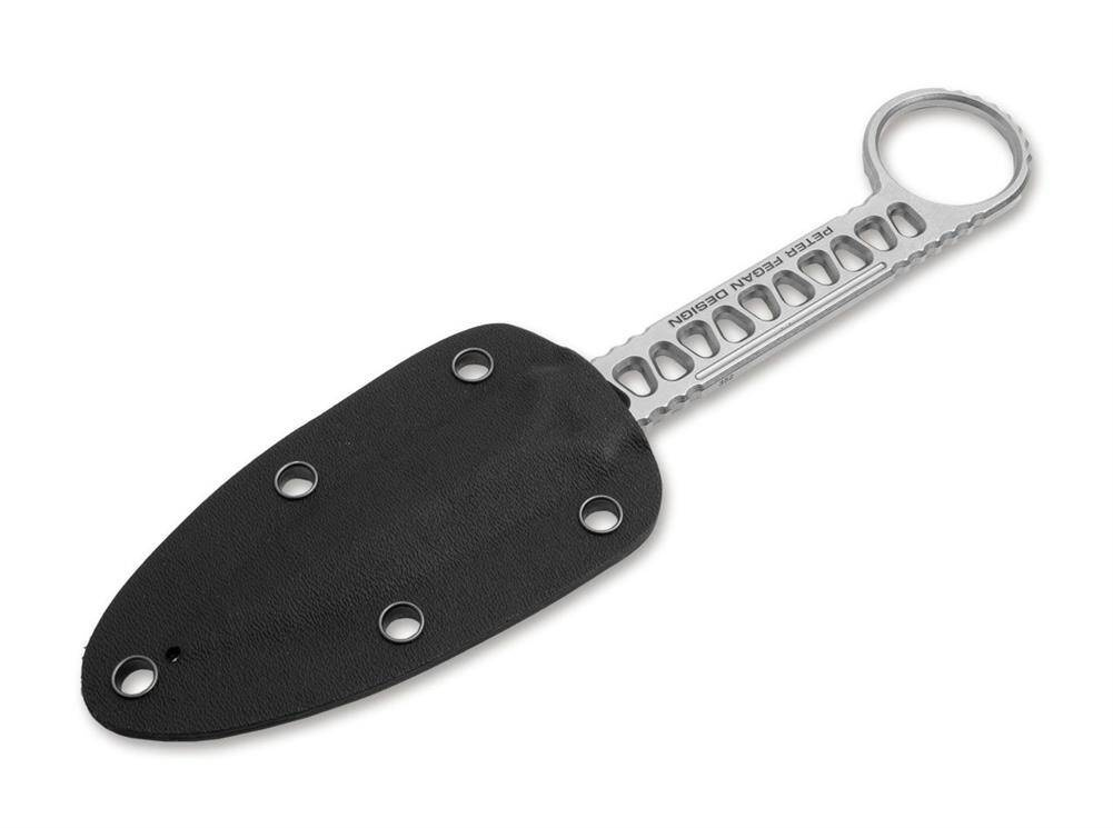 Charakterystyczna konstrukcja szkieletowa Petera Fegana nadaje nożowi taktyczny wygląd, jednocześnie zmniejszając wagę solidnej konstrukcji w całości ze stali z delikatnym wykończeniem