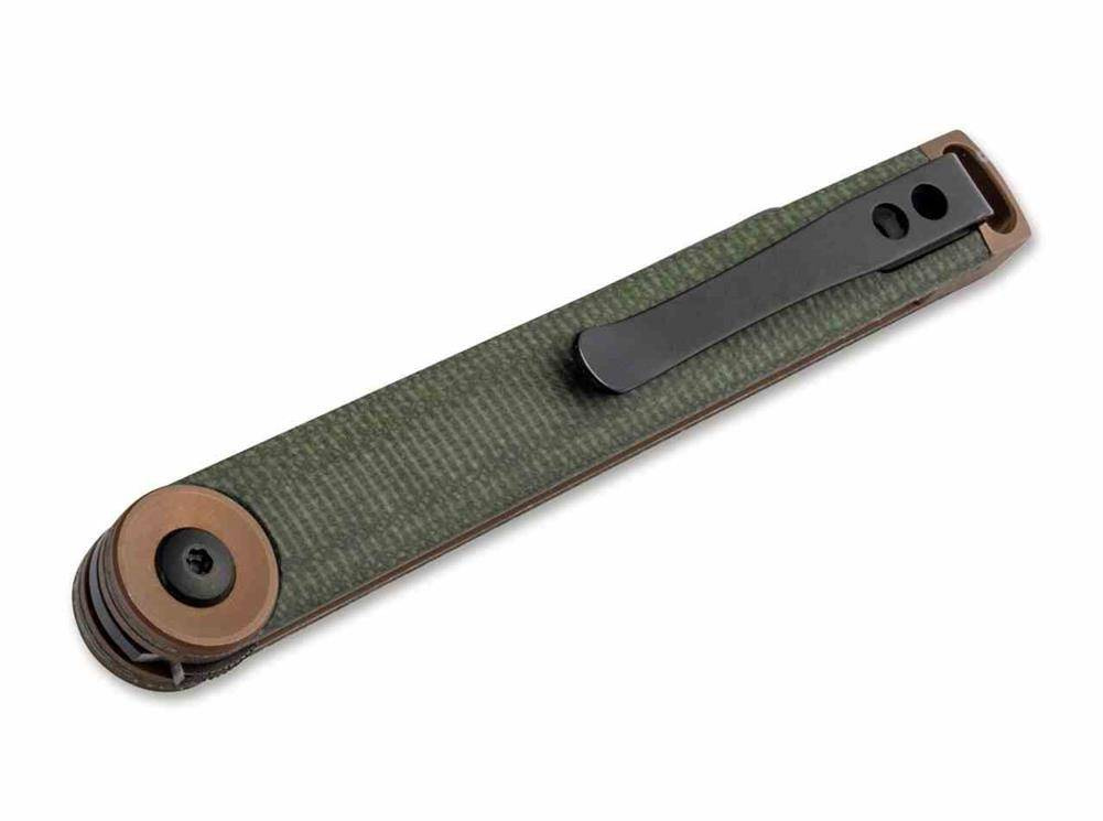 Popularny Boker Plus Kaizen przekonuje w tej wersji, wyposażony w lekko wyprofilowane łuski rękojeści wykonane z oliwkowo-zielonej płóciennej micarty, a ostrze i klips są pokryte czarną powłoką.