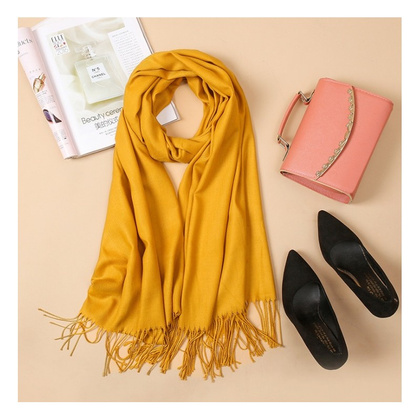 Szal z frędzlami, chusta mustarda SZA40MUSZ