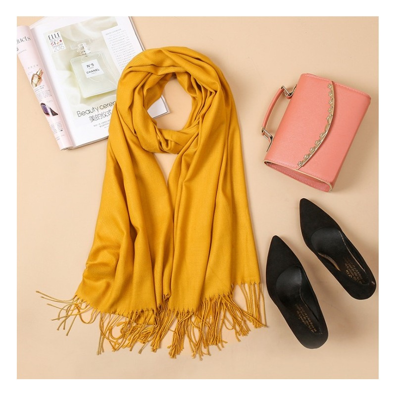 Elegancki szal / chusta  Elegancki szal z frędzlami Wymiary: 70 cm x 200 cm waga 250 g Materiał : 80 % wiskoza 20 % poliester   Idealny do jesiennych kurtek oraz zimowych płaszczy.