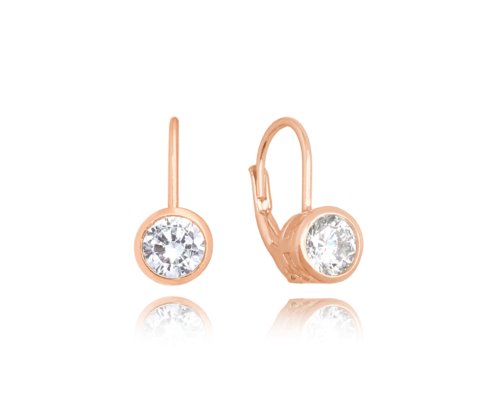 MINET Rose gold kolczyki srebrne z białymi cyrkoniami