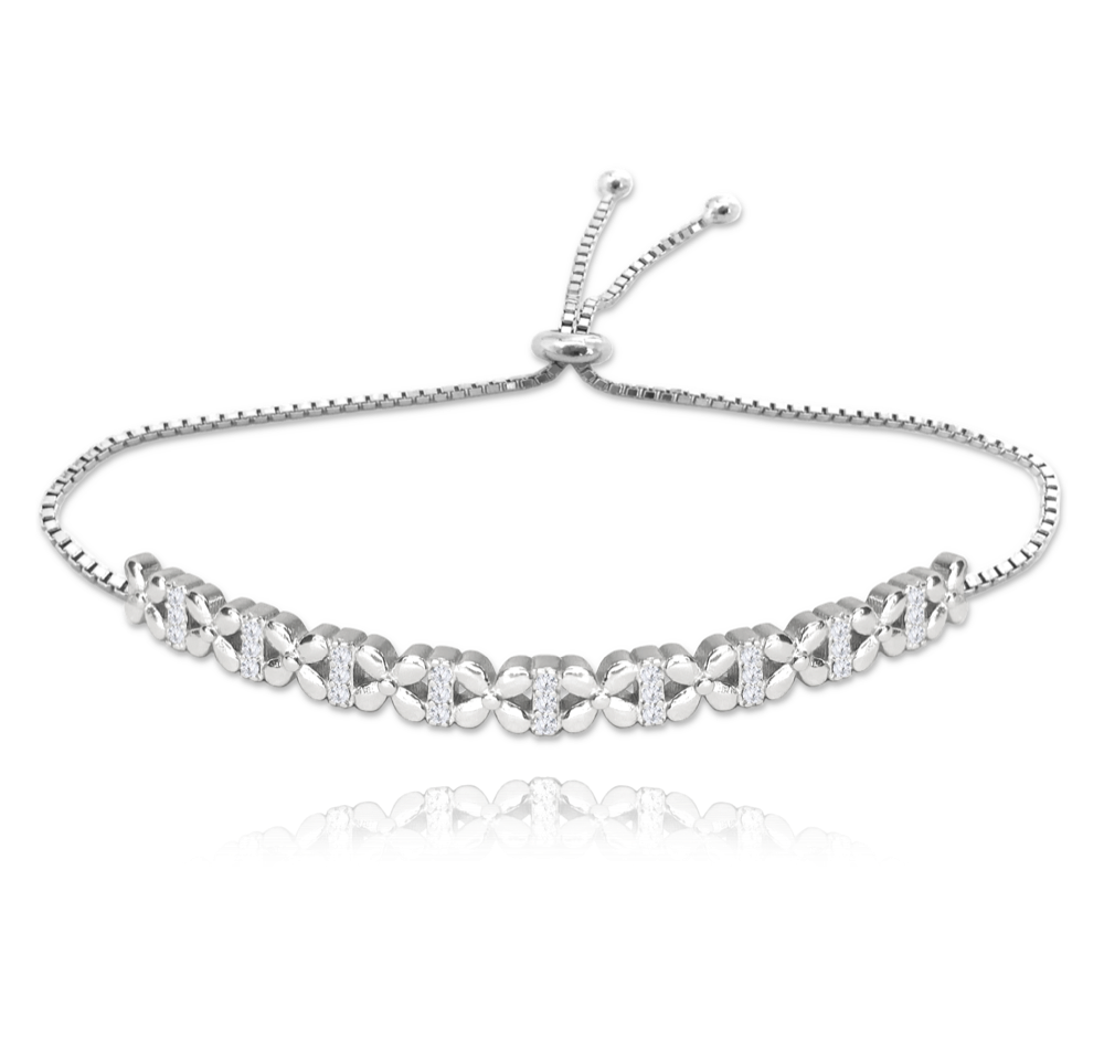 MINET Srebrna bransoletka KWIATY z białymi cyrkoniami i ściąganym zapięciem