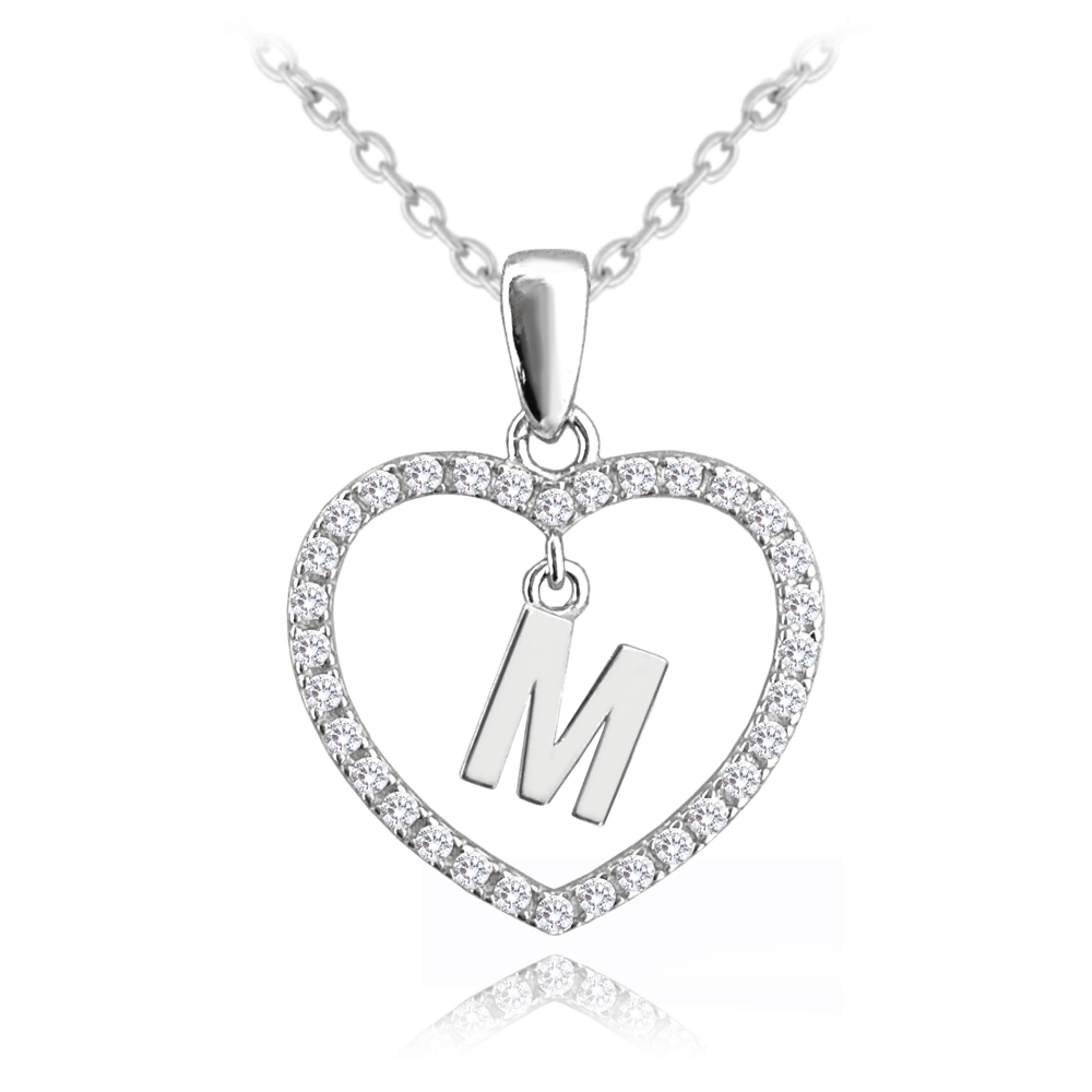 MINET Srebrny naszyjnik litera w sercu „M” z cyrkoniami