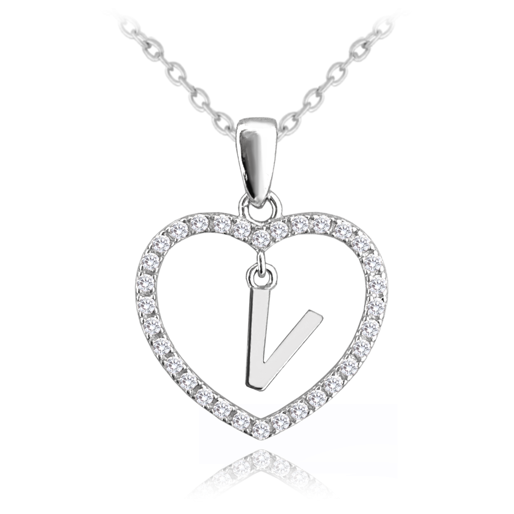 MINET Srebrny naszyjnik litera w sercu „V” z cyrkoniami
