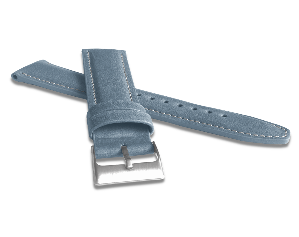 LAVVU Wyściełany niebieski szyty pasek CLASSIC z luksusowej skóry Top Grain - 24