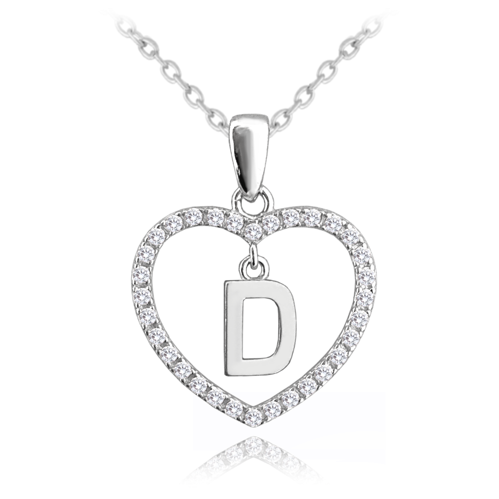 MINET Srebrny naszyjnik litera w sercu „D” z cyrkoniami