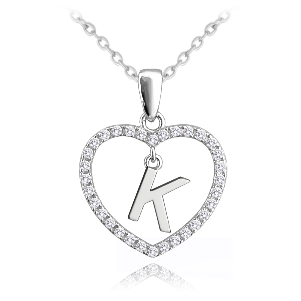 MINET Srebrny naszyjnik litera w sercu „K” z cyrkoniami