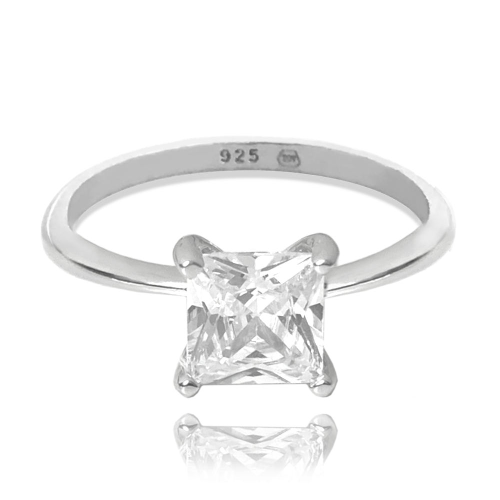 MINET Pierścień srebrny z dużą białą cyrkonią wielkość 13