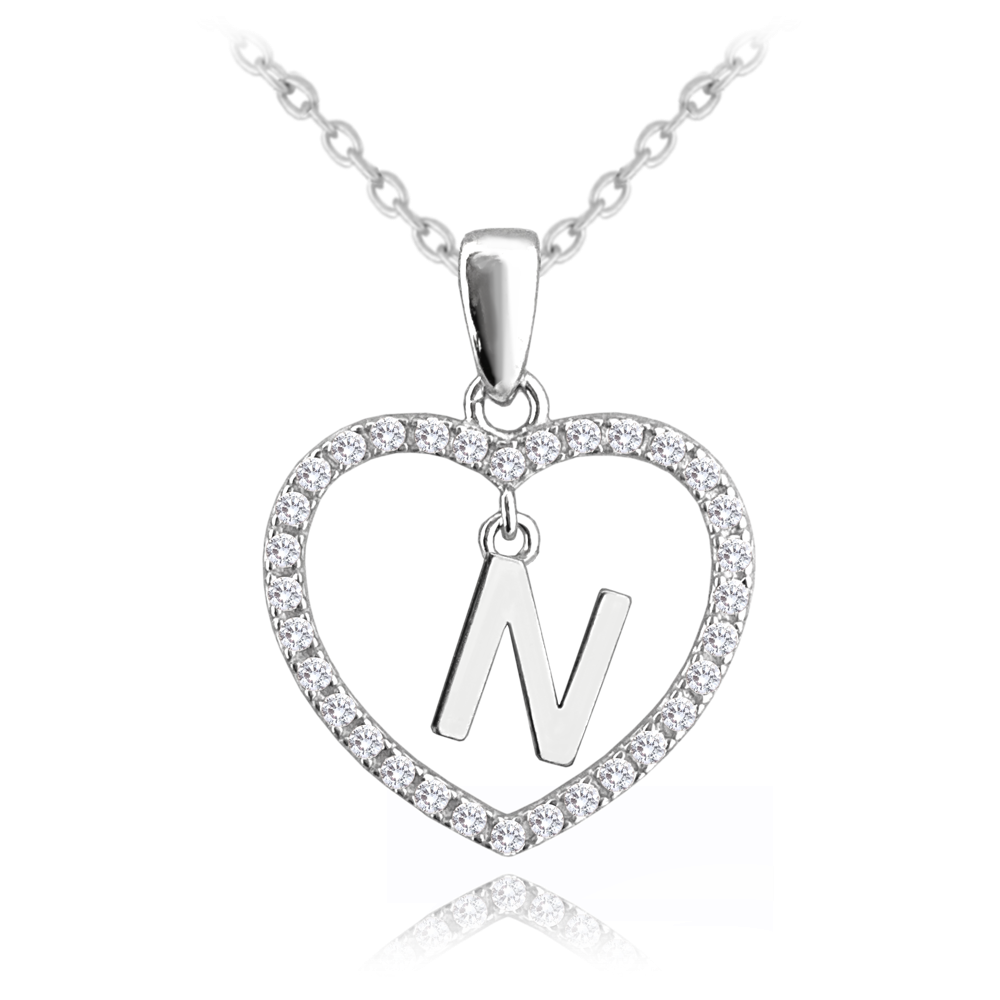 MINET Srebrny naszyjnik litera w sercu „N” z cyrkoniami