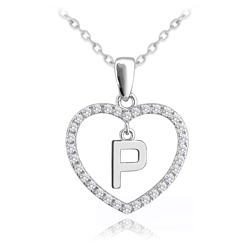 MINET Srebrny naszyjnik litera w sercu „P” z cyrkoniami