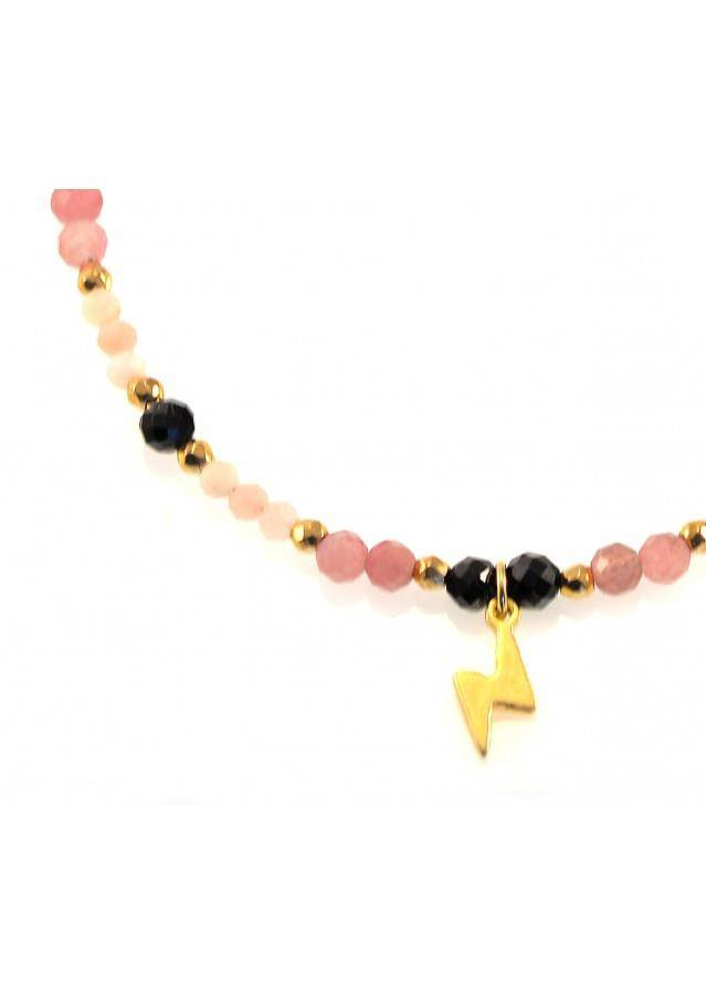 Bransoletka wykonana ze srebra próby 925 , pozłacanego 24 karatowym złotem Kamień: Turmalin+ Opal+ Spinel + Hematyt Rozmiar kamienia: 2 mm/3mm/4mm Długość :do regulacji