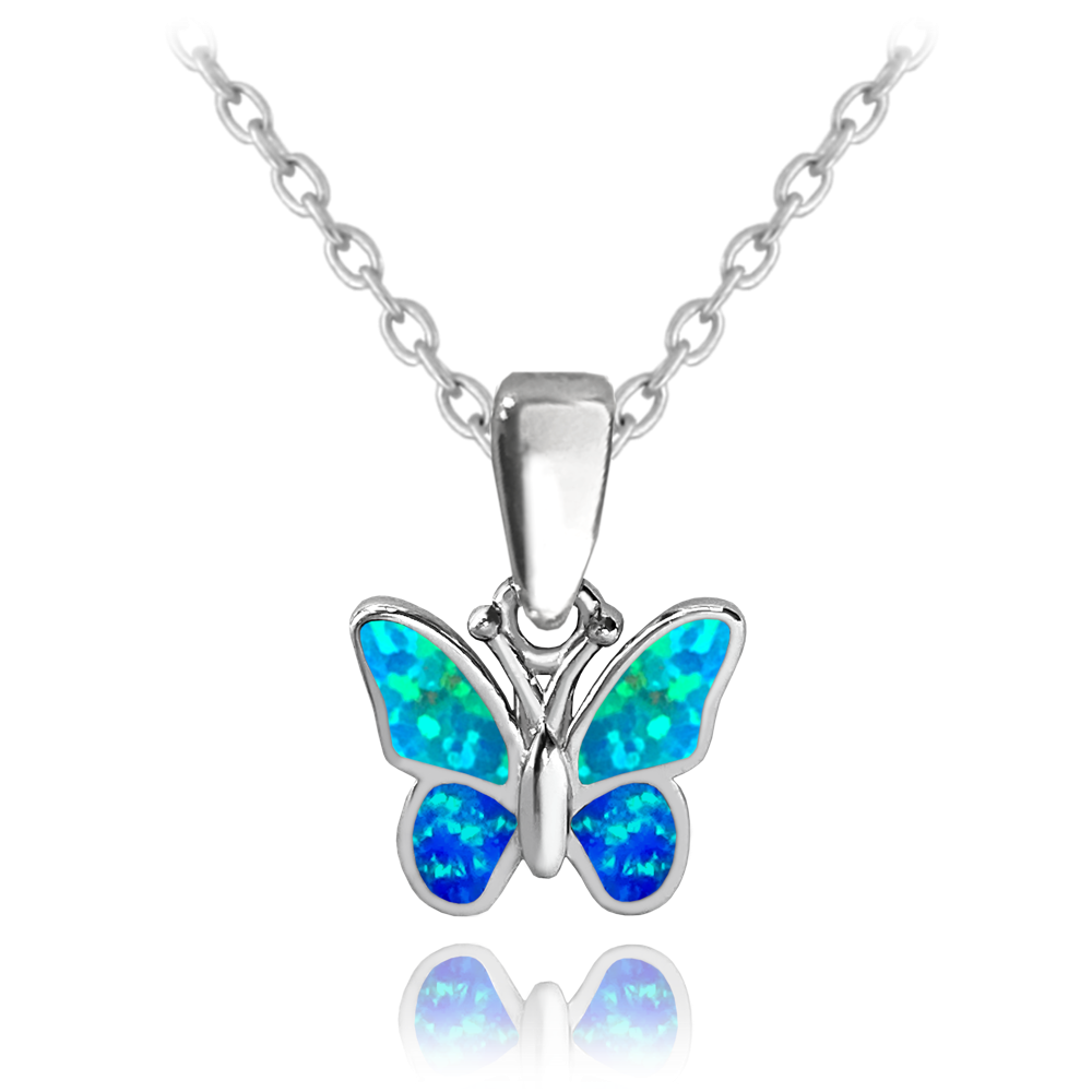 MINET Błyszczący naszyjnik srebrny MOTYL z niebieskim opalem