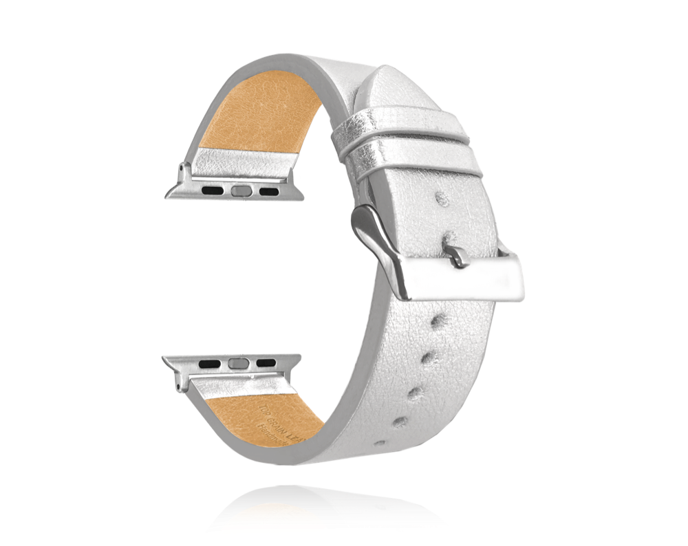 MINET Srebrny skórzany pasek Top Grain do APPLE WATCH 38-40 mm