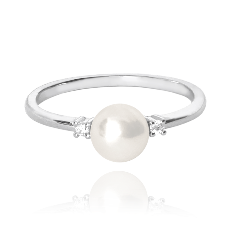 MINET Pierścien srebrny z perłą i białymi cyrkoniami wielkość 12