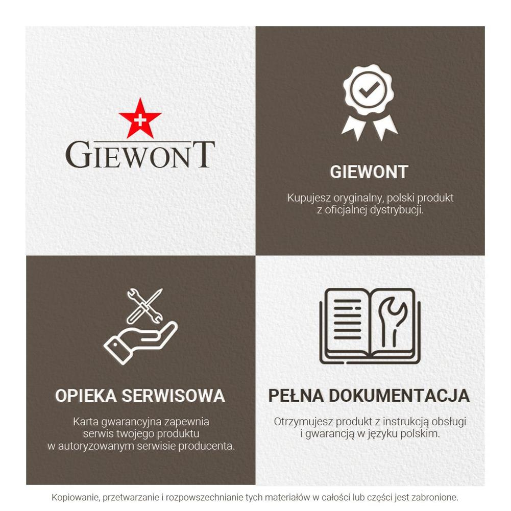 - Oryginalny zegarek marki Giewont - Oryginalne pudełko - Firmowa torebka prezentowa - Instrukcja obsługi z kartą gwarancyjną w języku polskim