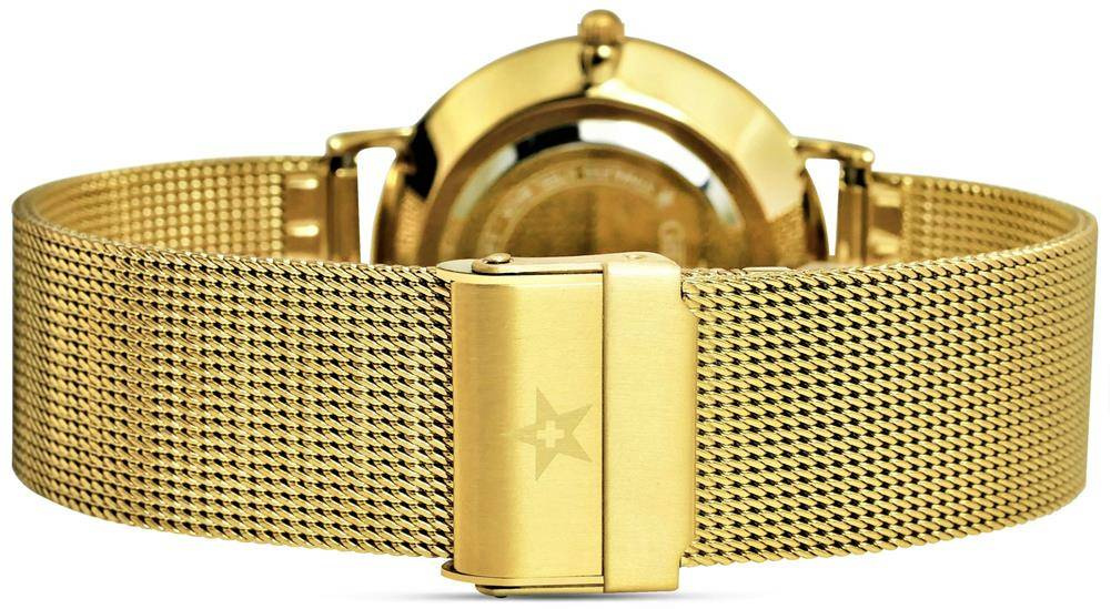 Komfortowa, giętka bransoleta typu mesh, o drobnym splocie elegancko odnajduje się w towarzystwie niewielkiej, prostej tarczy zegarka. Zapięcie typu "click" z dodatkowym zabezpieczeniem przed odpinaniem zapewnia komfort i spokój podczas codziennego użytkowania. Dzięki regulacji bransolety z łatwością dopasujesz obwód do swojego nadgarstka, zdobiąc go niepowtarzalnym dodatkiem w postaci kwarcowego zegarka sygnowanego logiem Giewont. |