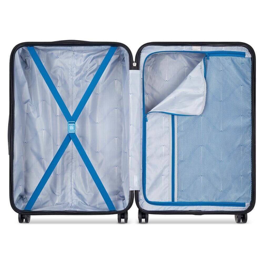 Wnętrze COMETE + zostało starannie zaprojektowane, aby zaspokoić potrzeby najbardziej wymagającego podróżnika: wysokiej jakości podszewka, dwie przegródki na suwak, zestaw pasów i wiele kieszeni. Pakowanie walizki jeszcze nigdy nie było tak przyjemne, a elegancki czarny kolor idealnie pasuje zarówno do stonowanych męskich kolorów, jak i klasycznej czerni tak chętnie wybieranej przez kobiety.