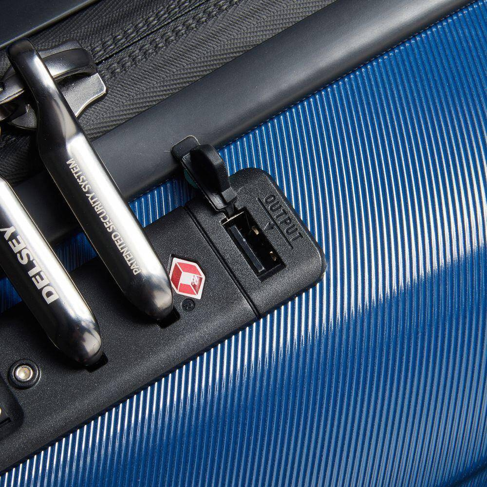 - Podwójna ochrona dzięki zamkowi z blokadą TSA oraz systemowi suwaków ZIP SECURITECH. Dzięki zamkowi z blokadą TSA, zatwierdzonemu przez US Transport Security Authority (TSA), amerykańskie władze, używając specjalnego klucza TSA, mogą sprawdzać bagaż bez jego uszkadzania