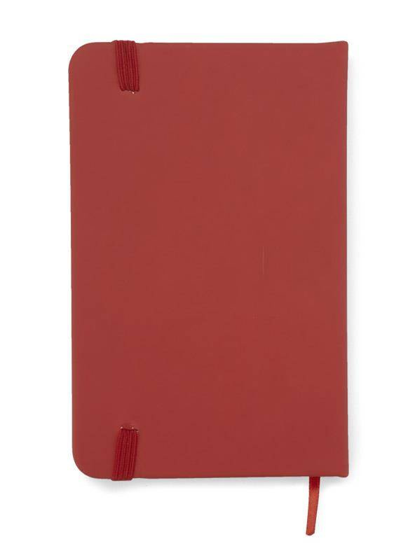 Gustowny notes A6 z kolorową gumką wykonany z ekoskóry PU.