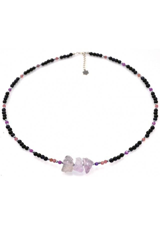 Naszyjnik wykonana ze srebra próby 925, platynowana. Kamień: Noc Kairu, Turmalin i Hematyt Rozmiar kamienia: 4mm Długość: 44 cm  Długości do wyboru: 38 cm /42 cm/ 44 cm Zapięcie: klasyczne (federing) Biżuteria ręcznie wykonana, produkt Polski.