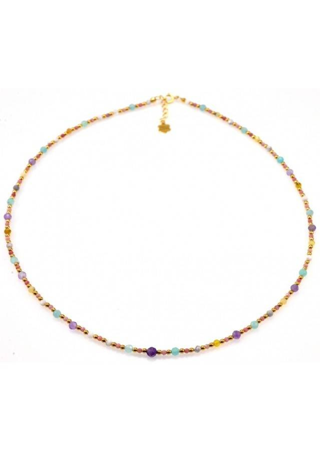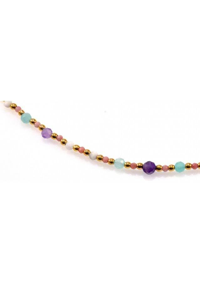 Kamień: Ametyst, Amazonit, Rodonit i Hematyt Rozmiar kamienia: 2mm / 3mm Długość: 44 cm Długości do wyboru: 38 cm /42 cm/ 44 cm Zapięcie: klasyczne